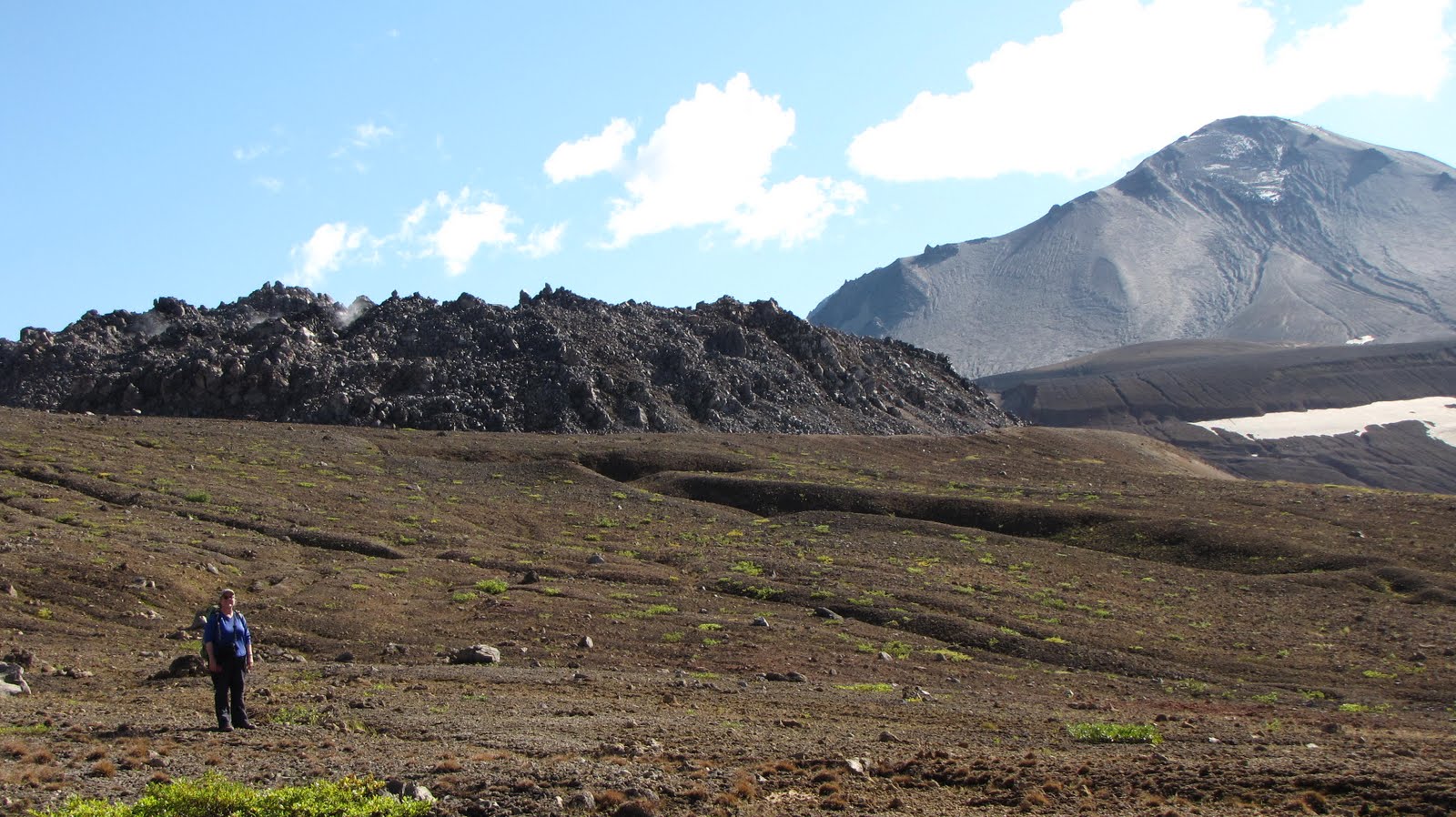 Apparently Jeanette took it to heart that I had âThings left unfinishedâ since just a couple weeks earlier it looked like this geo-traveler might not get out to Novarupta, the site of the worldâs largest volcanic eruption of the 20th century. So we put together a 2-night, 3-day backpack trip and were determined to go. Jeanette had been out there a couple weeks previous and knew the river crossings and where to get water. We would take whatever came along be it cold or wind or rain or all three. We really never expected to have glorious sunshine the entire time we were out. But there you go⌠We didnât expect anything and got the best we could possibly get. It just goes to show.