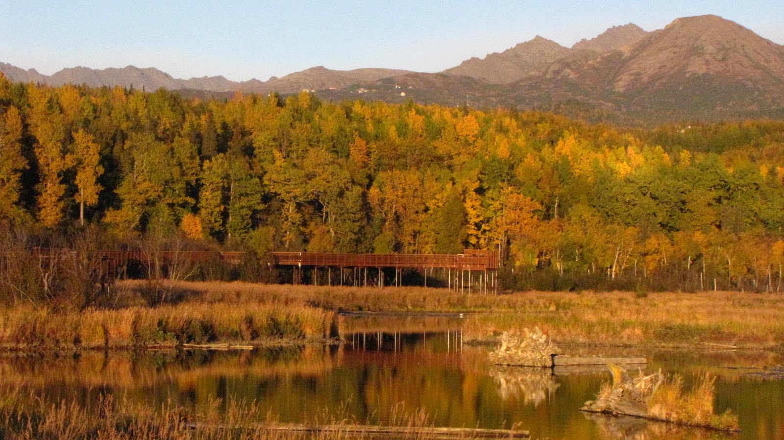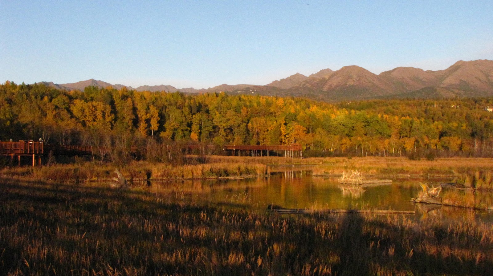 Sunset at the elevated walkways and viewing platforms at Potter Marsh: