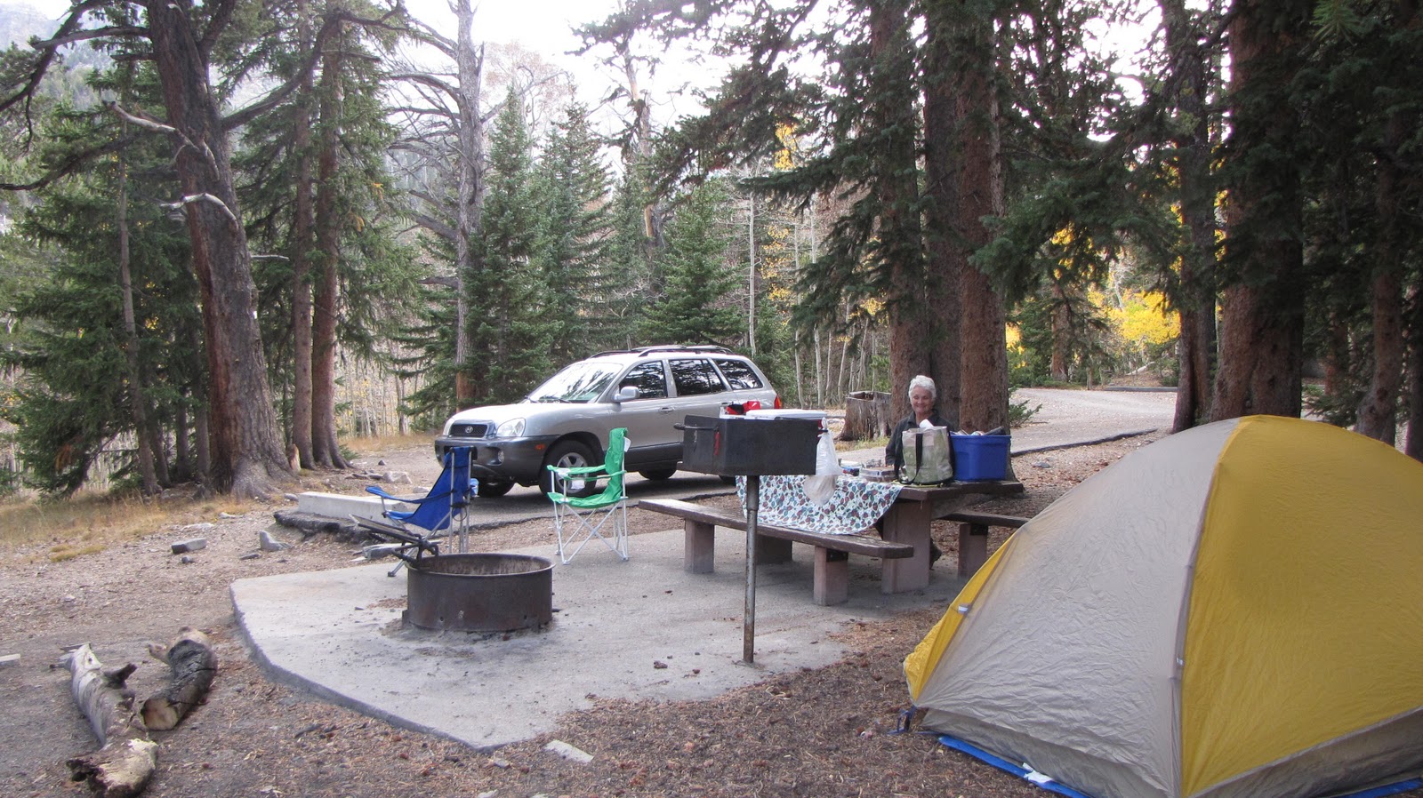 A ranger with NPS guided our the 90-minute tour – only 20 people at a time are permitted and even in late Sept. our tour was full. I had another personal agenda for spending a few days at Great Basin – back in late winter I had applied for a seasonal NPS job there, but by the time they called me (in April) to see if I was interested I had already accepted the job at Katmai. So I wanted to meet with the woman I’d spoken with in April, and put a face to a name so that I would be remembered the next time my application floated across her desk. My efforts paid off and we were able to spend a nice bit of time chatting. I discovered that Great Basin NP has several permanent park ranger positions in addition to their seasonals. So naturally I will watch for the job posting and see what the future brings. I totally would love to work at Great Basin permanently – it’s close to home and the geology of the region fascinates me. Lucy at Wheeler Peak Campground