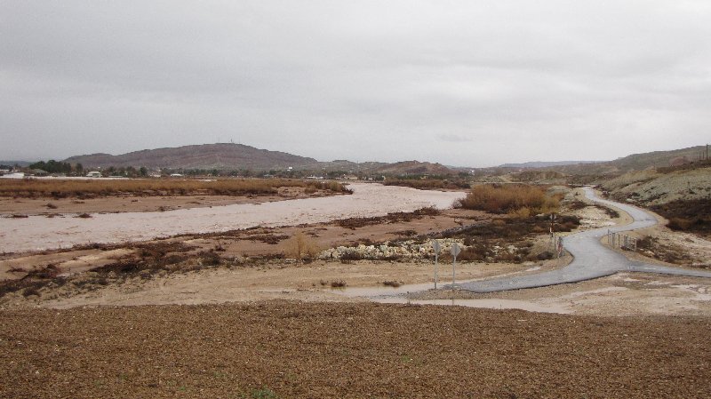 Downstream ≈ 8 miles further at Hurricane, at 10:00 AM Wed. 12/22 the Virgin River peaked @ 5391 cfs. It is forecast to peak at midnight 12/23 Thursday morning at ≈9000 cfsThe typical flow at Hurricane, due (I’m guessing here) to irrigation withdrawal, is ≈70 cfs.YIKES!!!!!