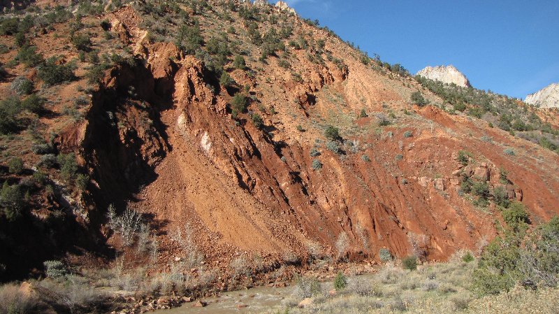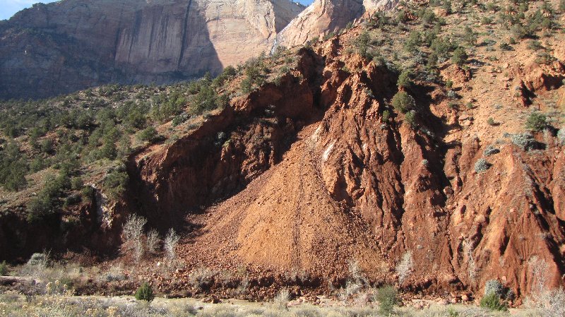 In the next several images the Virgin River can be seen as it cuts through the recent slide debris.