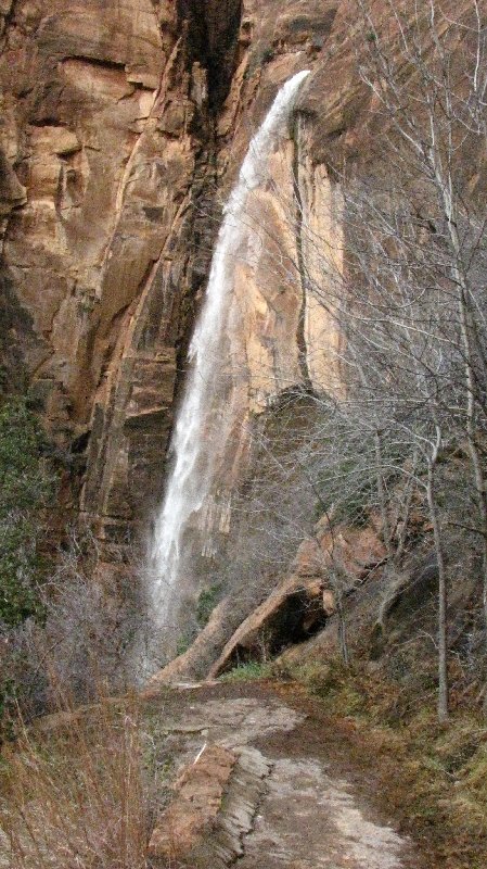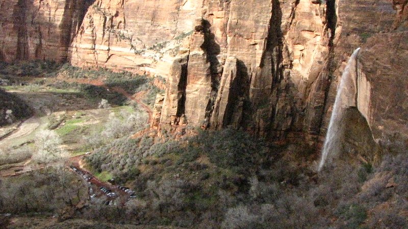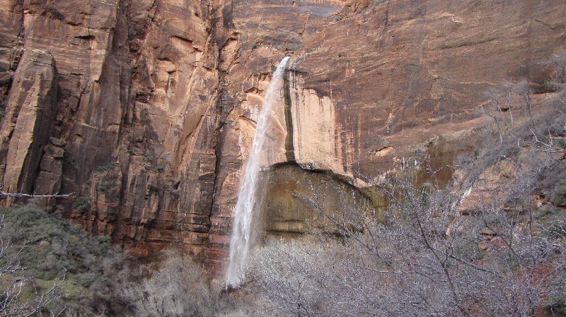 Although last week’s storm is now last week’s history, the effect of all that rain and snow melt on Zion National Park’s landscape continues to amaze me. And so, in light of this amazement, I would like to share with you a few final photos of my favorite waterfall. It normally does not exist without a fairly intense storm such as we experienced bringing with it a massive amount of precipitation. This waterfall is usually not here!